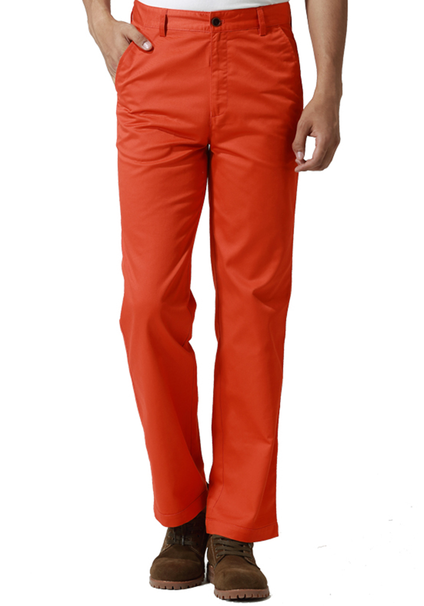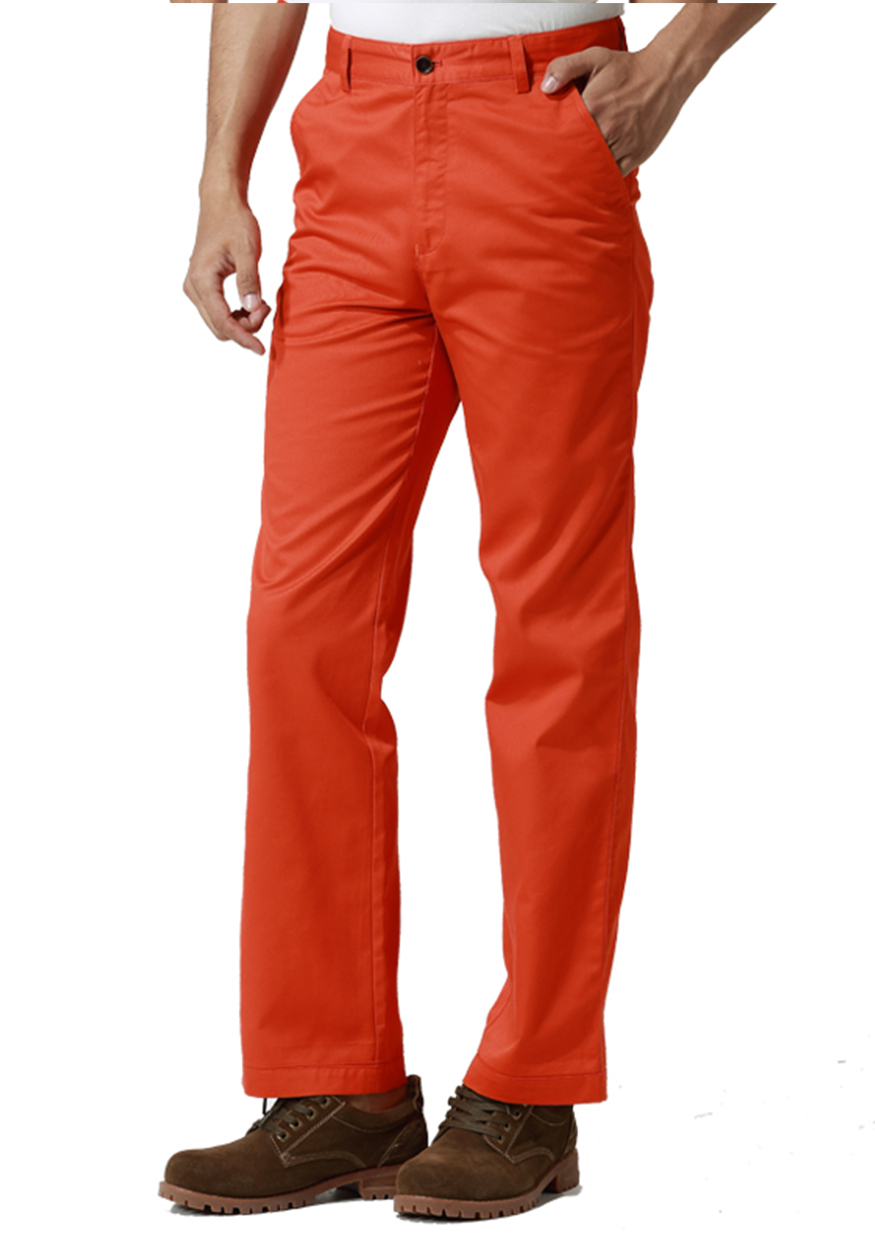 涤棉厚纱卡春秋装橘红色休闲裤